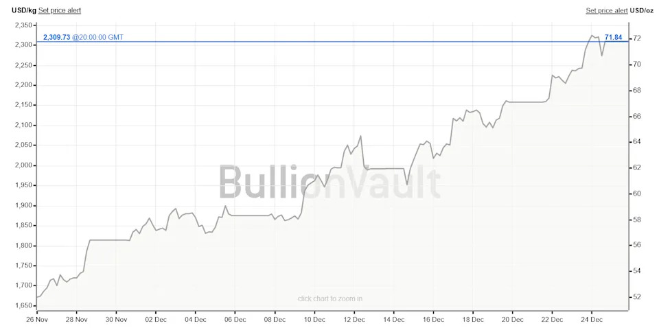 The latest silver move originated in China, where local prices reached record levels on December 25. Evidently, China is facing a shortage of physical silver.
