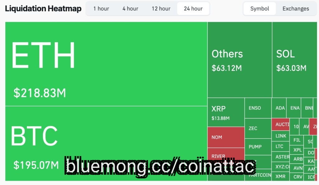 Ethereum liquidations jumped to over $218 million, while Bitcoin liquidations jumped to $195 million. Solana liquidations jumped to $63 million. The other top liquida