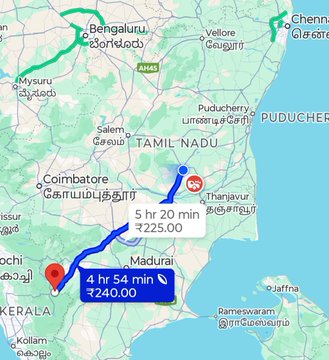 Yesterday, we flew in from Kerala. Today, we are riding towards it. Small world.