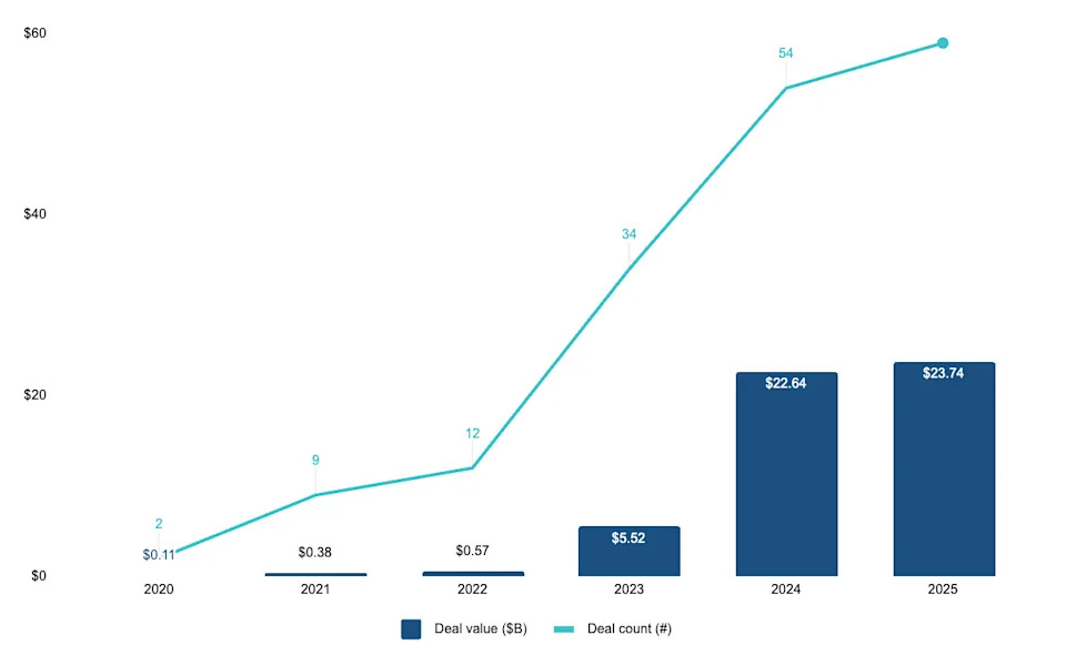 Nvidia invested $23.7 billion in firms in the ***** e through 59 deals between the start of 2025 and Monday, according to Pitchbook data. For the entirety of 2024, Nvidia inked a total of 54 deals worth $22.8 billion.