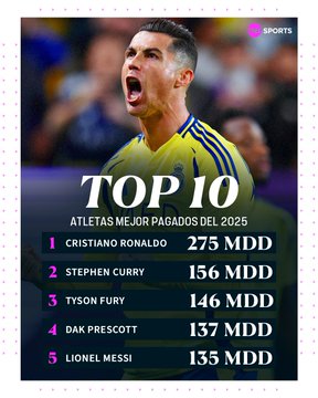 La revista Forbes publicó la lista de los 10 deportistas con los sueldos más altos de este 2025.
