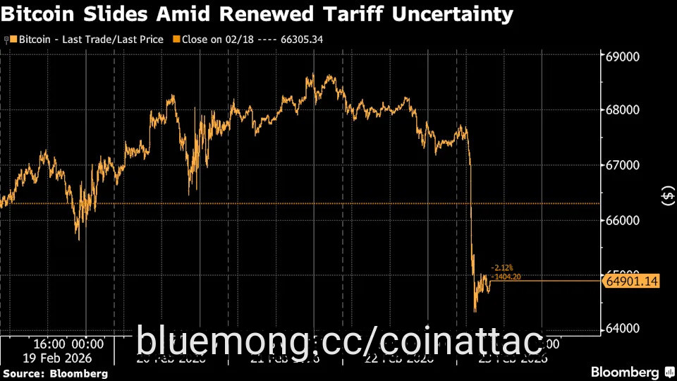 Investing.com -- Bitcoin fell briefly after U.S. President Donald Trump said he would raise a temporary global tariff rate to 15% on Saturday, before rebounding later in the session as prices stabilized.