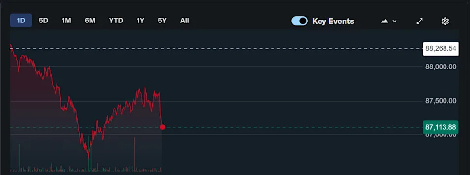Bitcoin dropped from around $87,800 and risk falling below $87,000.